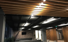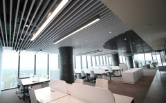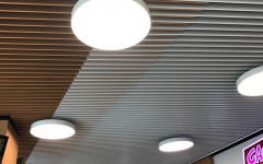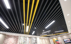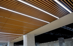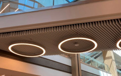 Baffles are linear panels installed in one way to increase the sight of the location. This models are widely used to keep same volume perception while decreasing the level of the ceiling.